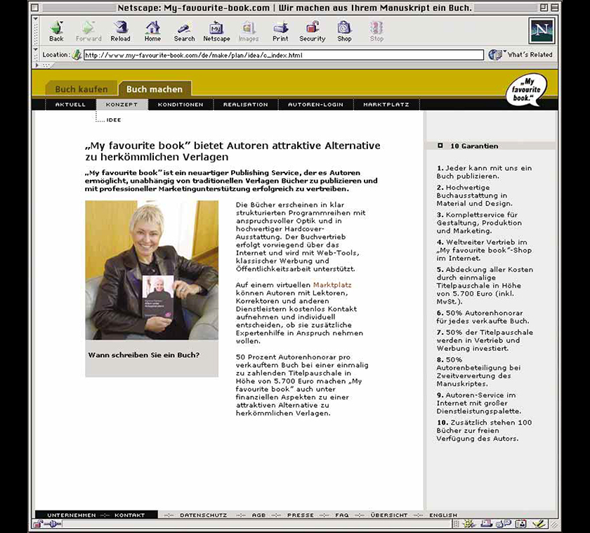 „My favourite book“ was the world's first attempt at combining the potential of the World Wide Web and new digital printing techniques with a view of superseding the international book publishing business through a revolutionary publishing service for authors and writers.